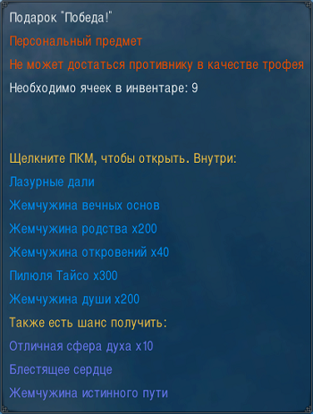 Открыв «Лазурные дали», вы случайным образом получите один из предметов: