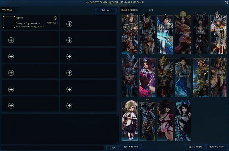 4. Подать заявку на сражение можно только после того, как все игроки выберут персонажей.