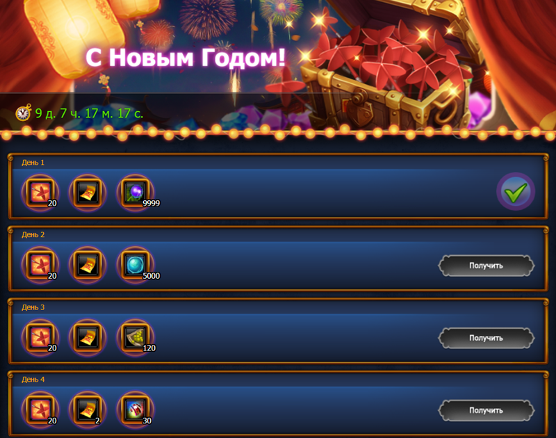 Каждый день, начиная с 10:00 мск 22 декабря, заходите в игру и отмечайтесь на специальной странице. Если вы не пропустите ни одного дня, то получите Истинные письма (10), Печать Ауруса ур. 9 и другие ценные подарки.